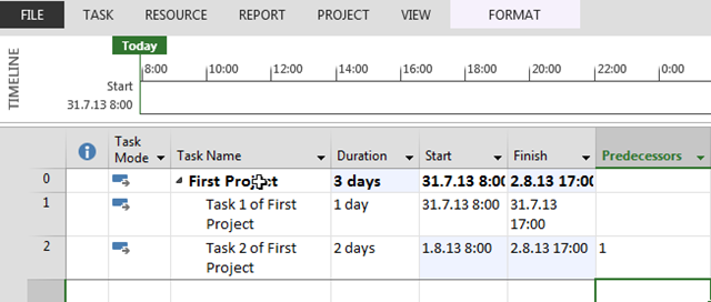 I’ll will save that Project as First Project.mpp (I’m not going to show you a picture of that, you know how to do the saving, don’t you?)