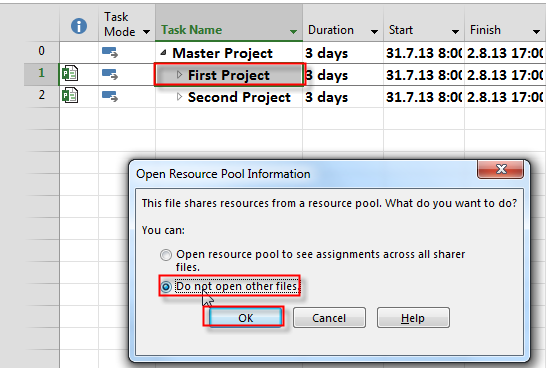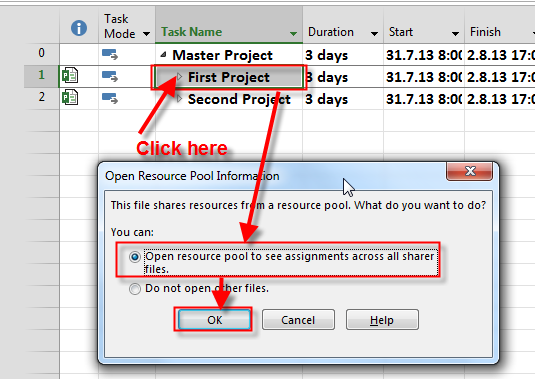Resource pool and subprojects in MS PROJECT 2013!