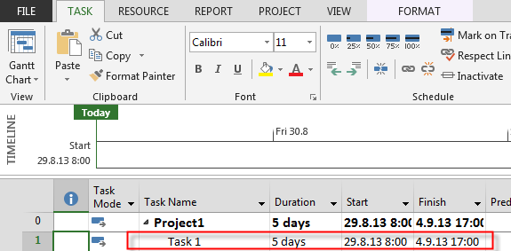As you can see Work = 0 hours! Why? I put 5 days to the Duration field!