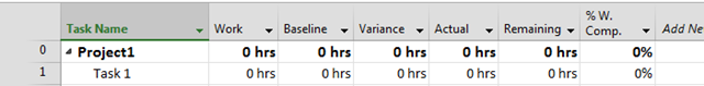 Now If I mark Task 1 as 100% finished, and take a look at the Work Table I’ll get: