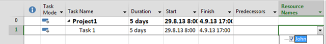 Now I am going to assign John to Task 1: