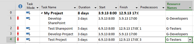 Firs step is to Assign Generic Resources to Tasks, and I’m going to do that: