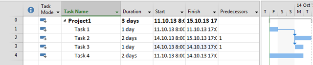 As you can see Start Date of Task 3 is now 15.10.2013, and not 14.10.2013.