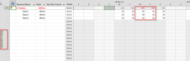 Now suppose that one of Testers is on Vacation from Wednesday, 12/18/2013 to Thursday, 13/18/2013. What does it mean? It means that I’ll have only 200% max Units during this period. How to do that? Follow examples below: