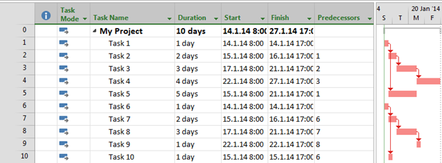 As you can see, Task 6 – Task 10, they are not at the Critical Path. But what if I want to see Tasks which are at the, so called, “Critical Path” in this particular Branch? I will do next: