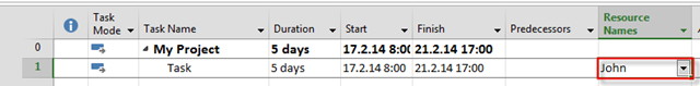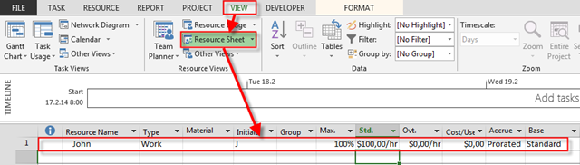 I will now add John as Resource for my Project:
