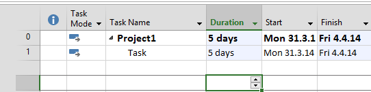 I will first, create a Brand new Project with one Task with 5 days Duration, like this:
