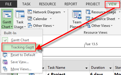 I want to see Critical Path, so I’m going to Use Tracking Gantt View: