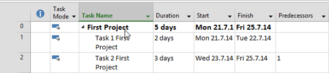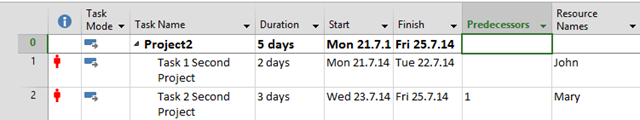 No I will create my first Project with two Tasks and I will assign Resources from the Resource Pool: