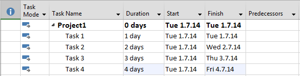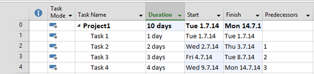 As you can see, all Tasks have a same Start date. When I hit F9, my Project will look like this: