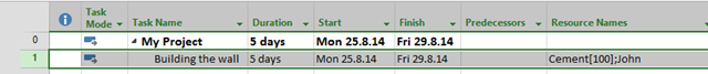 Notice, that Cement is Material Resource with $10 per Bag. Now I’m going to assign John to Task, and 100 bags as well: