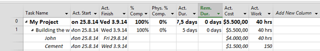 Actuals and Variances with Material Resources in MS PROJECT 2013! – Part 2