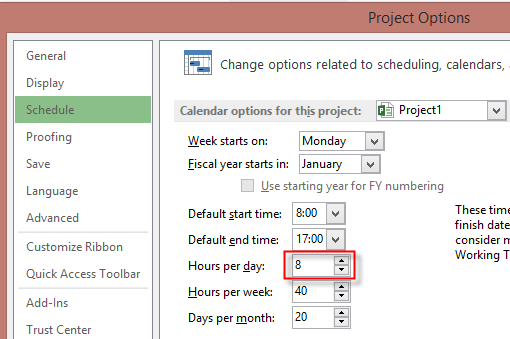 Now, let me explain what is going on! When I put 24 hours in Duration field, MS PROJECT calculate Duration in days = 3 days! Why? Because I have in Schedule options this: