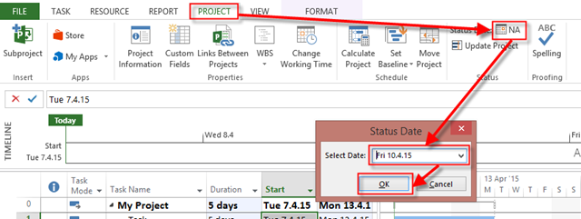 I’ve got a simple question from one of my Blog readers: “Hi, in your examples I can see Status Date in a Gantt Chart View. But I can not see it in my Projects. How to get this?”
