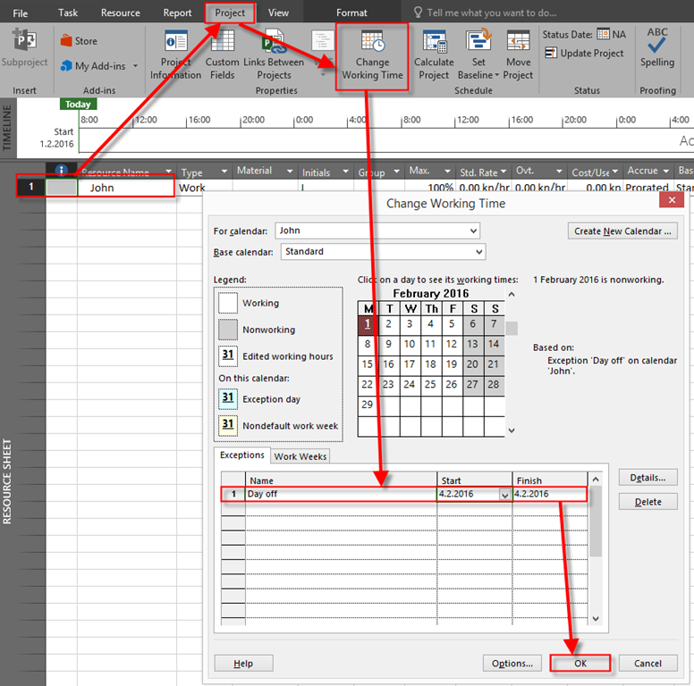 Now I’m going to set Thursday, 04.02.2016, as a Day off for John: