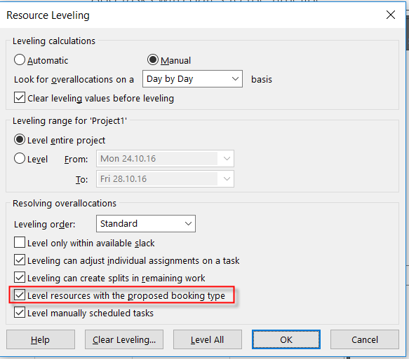 1 Response to Some leveling options in Microsoft Project 2016