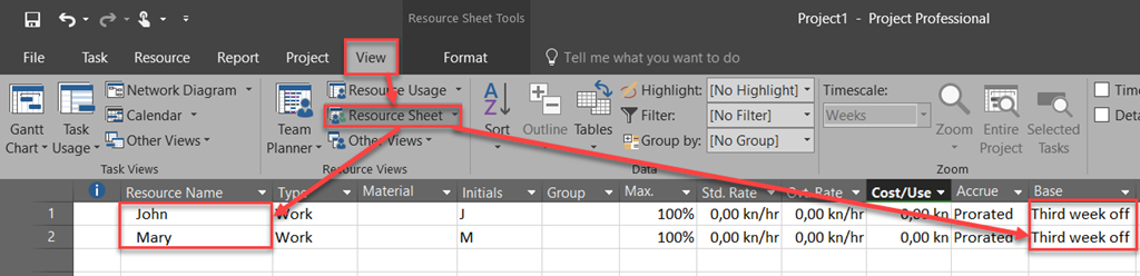 Now I am going to create two Resources, John and Mary, and I will assign this calendar to them: