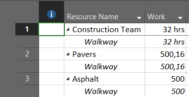 Notice, that MS Project rounded Units for Pavers to 15,56e per hour. Now we get this (in Resource Usage View):