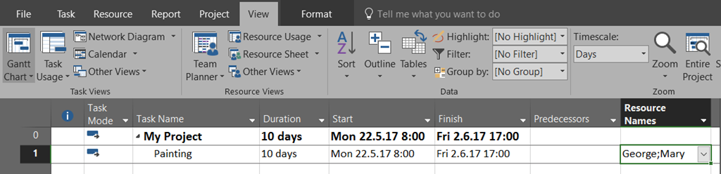 OK. Let’s say that task Painting has 10 days Duration. I want to distribute Resources to this Task like this: