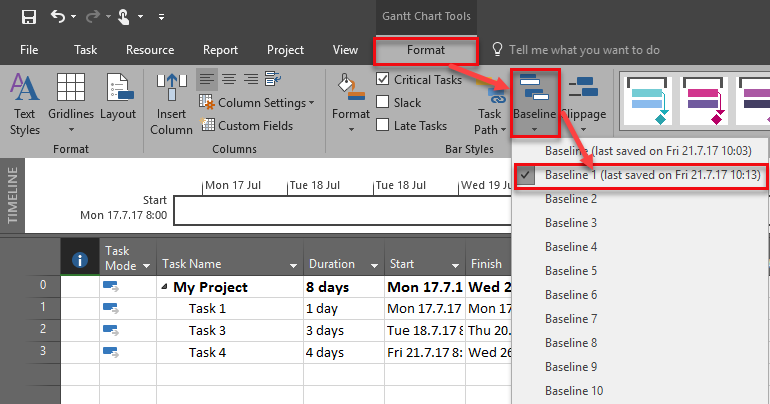 How to show different Baseline in Gantt Chart–MS PROJECT 2016