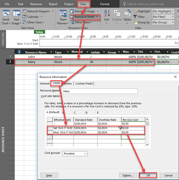 So this is solution! BUT! If you have those double rates for John and Mary for every weekend than you should put it manually, like I did for every weekend. there is no way to put so called “weekend” rates or something like that in MS Project. It is only date based.