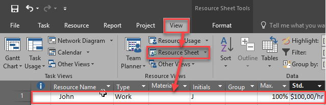 and I will create John as Resource with $100 / hour rate: