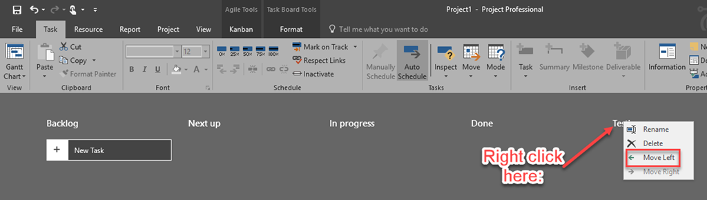 As you can see, each Column can be Renamed, Deleted or Moved. the only one which you can only Rename is Backlog Column!