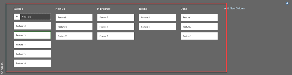 Now we will put some Features on Backlog and we will move them in Various Columns so your board can look like this: