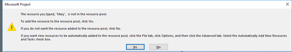 Now I can choose if I want or not add Mary to my Resources, because she doesn’t exist in Resource Pool.