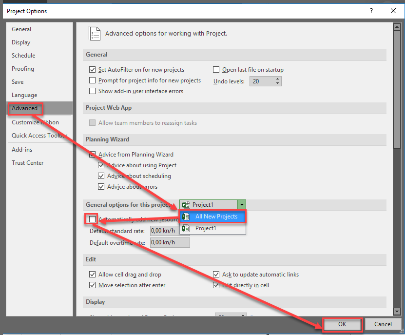 also be aware that this will apply only for the current Project on which I’m working at. If I want this option to be applied on al new Project I should choose: