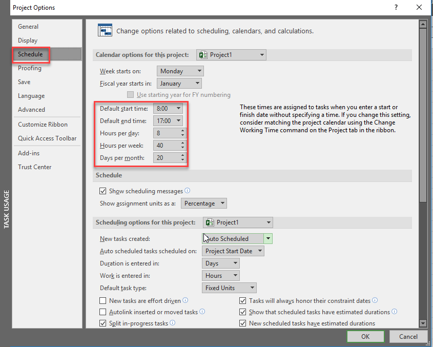 As you can see 1 day of Duration is 8 hours! (see hours per Day option in the picture above).