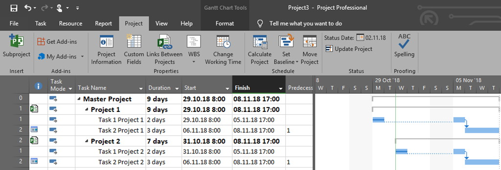 As you can see, I’ve got what I wanted. Those rescheduled Tasks ae reflected in original Projects as well (Project 1, and Project 2).