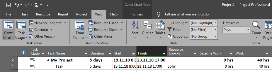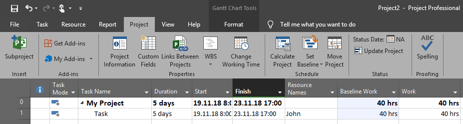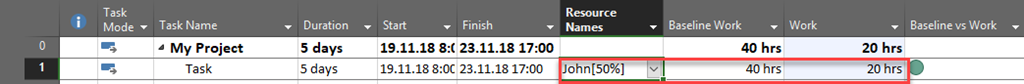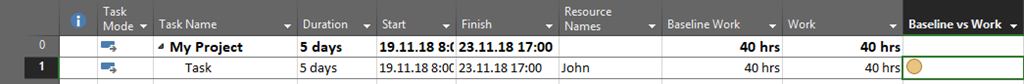 I put two extra columns just to show you how will it work: Baseline work, and Work.