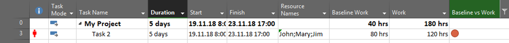This is very good way to show when you are exceeding work from planned, especially when you have a lot of Tasks in your Project.