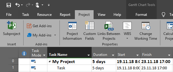 I’m going to create Simple Project with one Task: