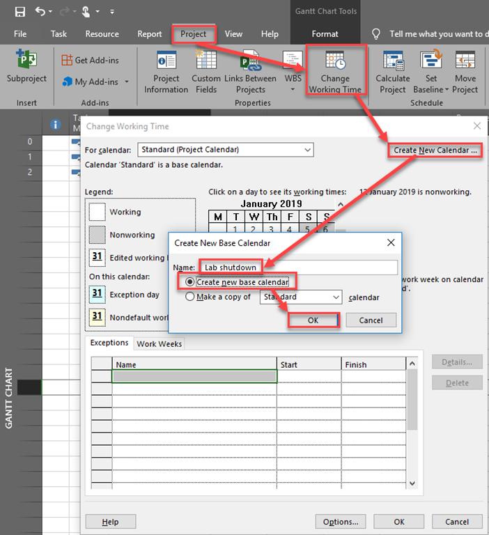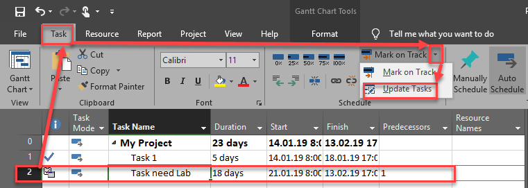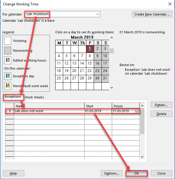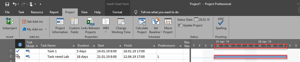 Now, let’s say that in March 2019, Lab is going to be shutdown, and Task need Lab cannot be done in this period.