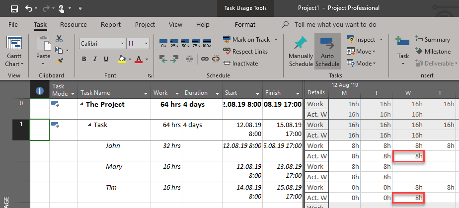 Now, let’s use Task Form, and edit workload for Mary and Tim.
