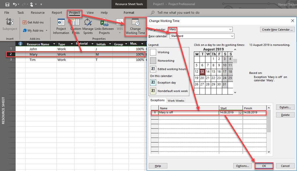So, Tip #1: Put exceptions for resource for period in which he or she is not available.