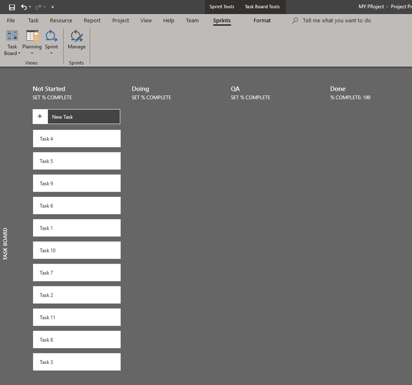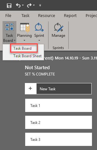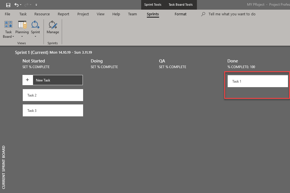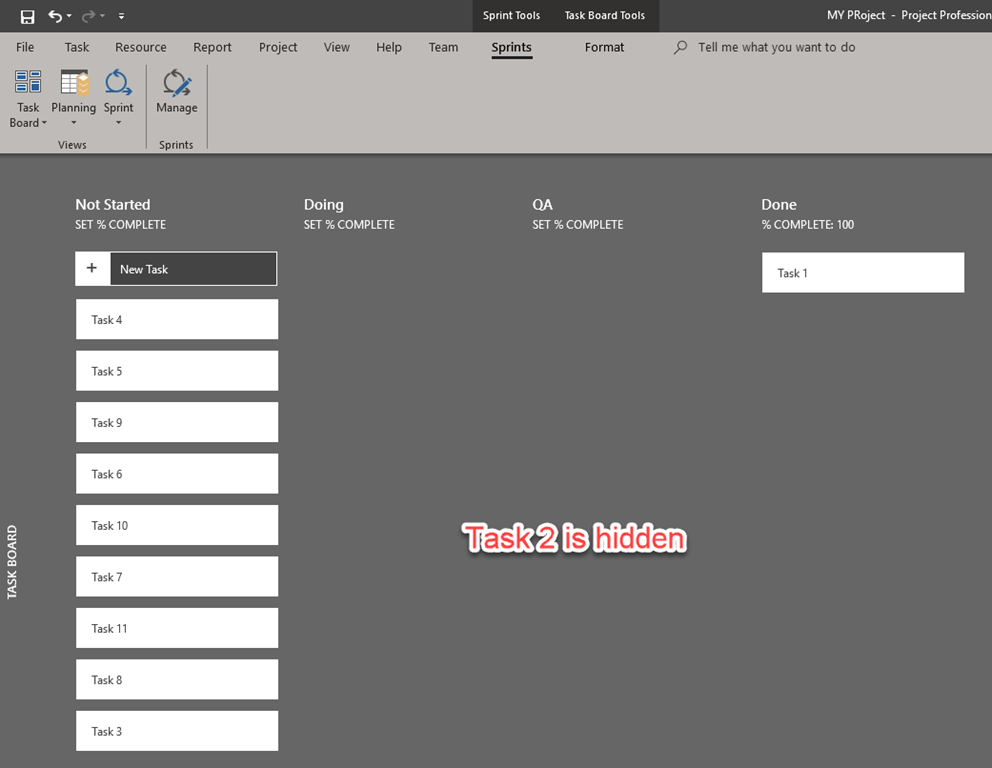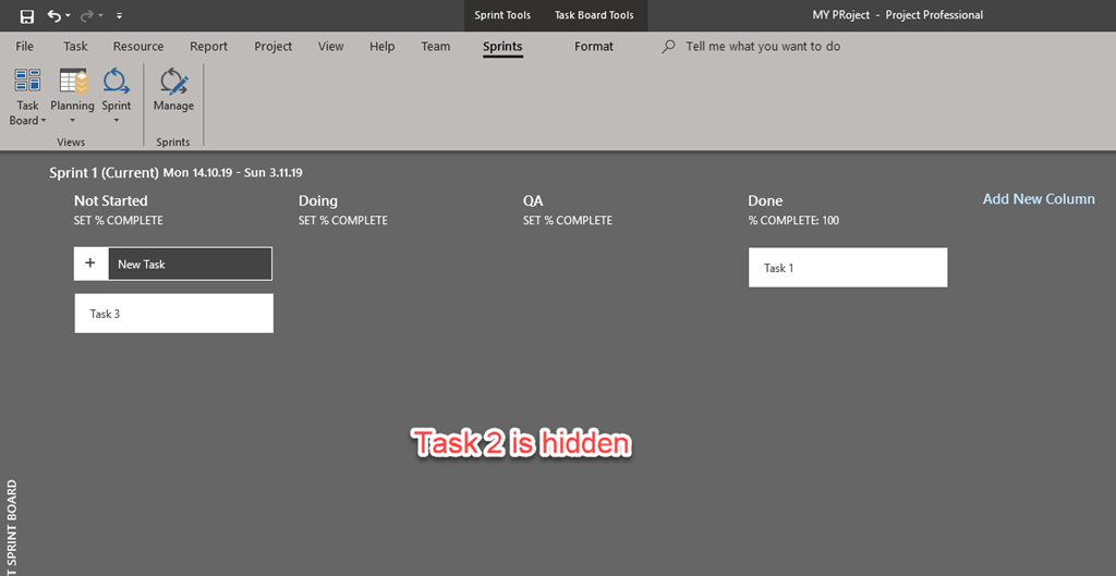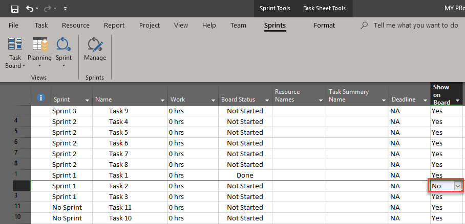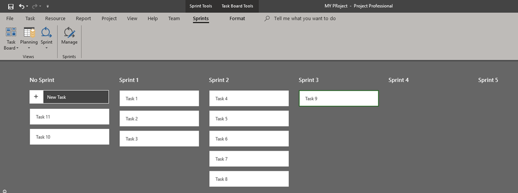 in my previous post (https://ntrajkovski.com/2019/10/15/how-to-implement-scrum-with-ms-project-step-by-step/) I’ve created Task board, and I assign Tasks to two of five defined Sprints: