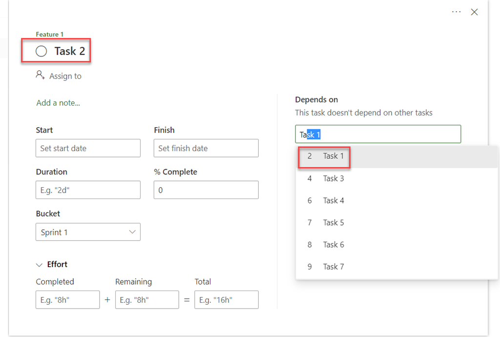 Features will never have Resources assigned to them. On the other hand, Tasks will always have! Let’s say tat I have Sprint Planning, and that we broke Feature 1 and Feature 2 to Tasks, and then those Tasks are going to be part of Sprint 1.