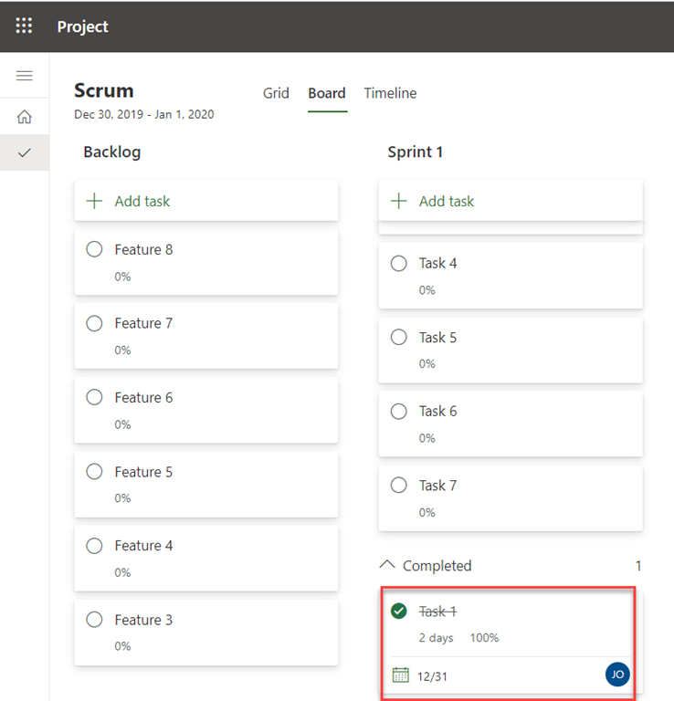 As you can see Feature 1 is gone! This is because Summary Tasks are never showed on any board, only Subtasks are!