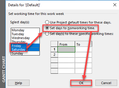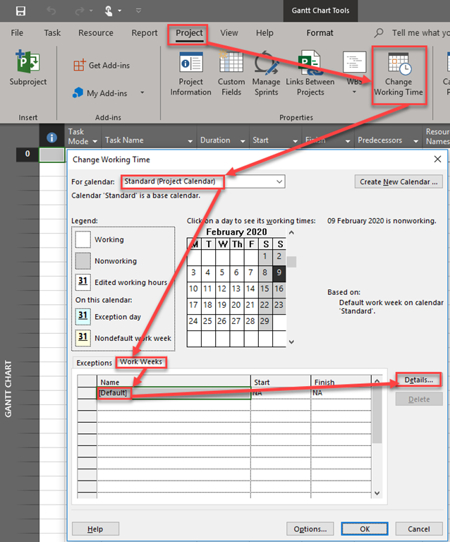 If you don’t like it this way, you can just create new Calendar (Let’s call it Saudi calendar), and then make all those adjustments, like I did in Standard calendar. After you do it, just copy This new, Saudi calendar to global template, and that’s it. But keep in mind that if you want to use that calendar in your Project you should choose it: