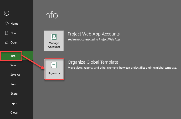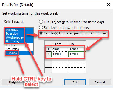 BUT! If I close my project now, and create a new one, I will have to repeat this process all over again. Because I want to make this working and non working days as default, I will change my global template like this: