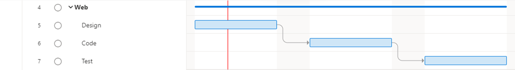 As you can see, predecessors are lost. OK! If I try to make Design as Code predecessor, and Code as Test Predecessor, I will now get: