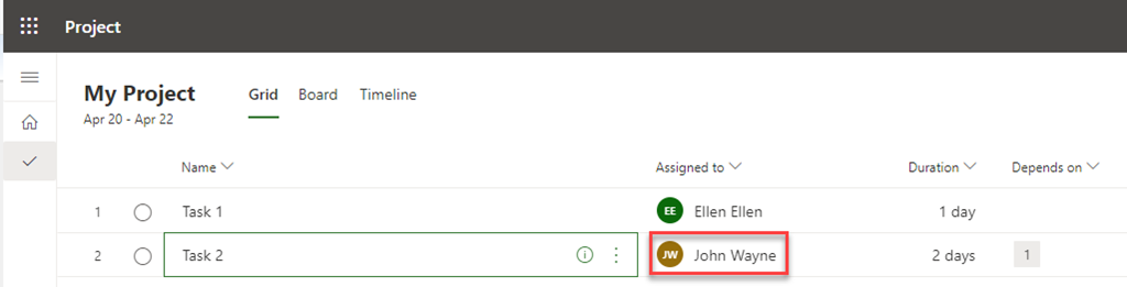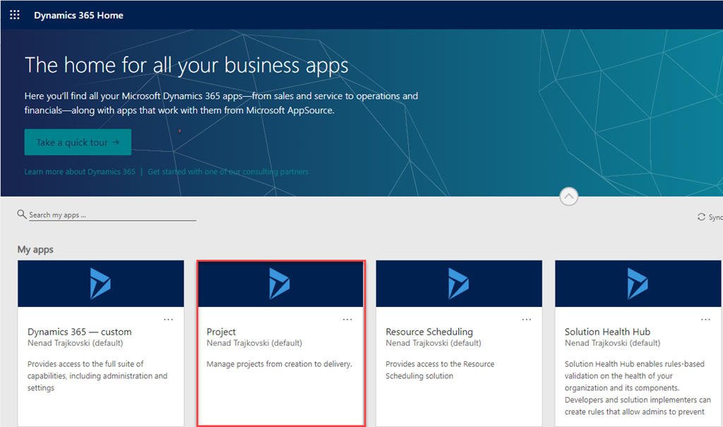 Now, let’s assume that on John Wayne will be working on Task 2, but he is not in my AAD, he is not supposed to work with Project for he web, and the only thing he would do will be – working on Task 2. To get that I should go to Dynamics 365: