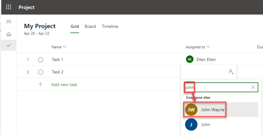 Now. I will go back to my Project, and I will add John Wayne to my Task 2:
