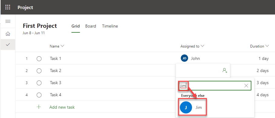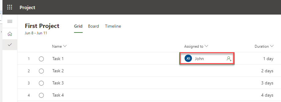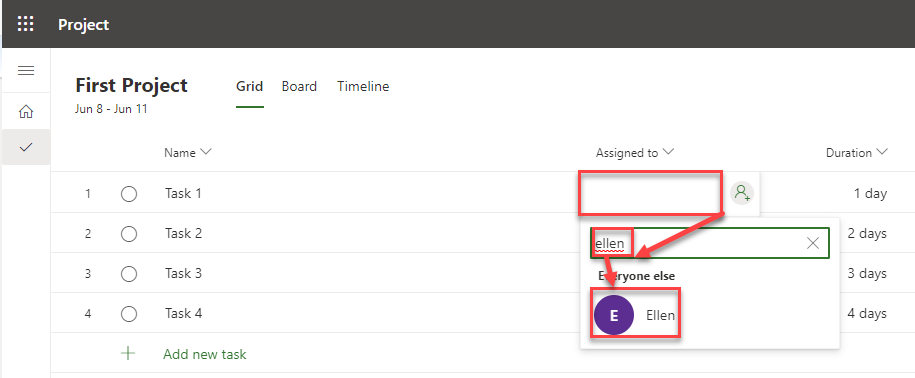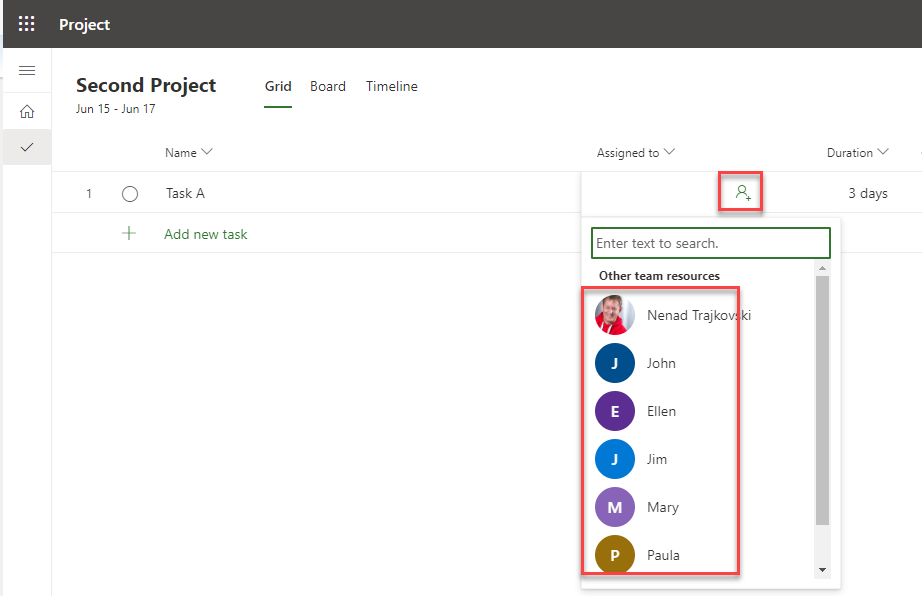 The Group is needed when I am going to assign First Resource to my Task. Let’s say that I want to assign Ellen to the Task 1: