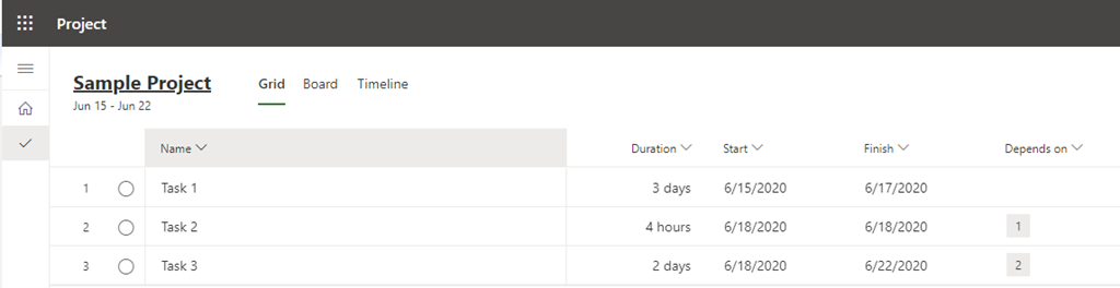 Task 3 should be started at 6/18/2020 at 1:00 PM (right after Task 2 should be finished. And finally, Task 3 should be finished at 6/22/2020 at 1:00 PM.