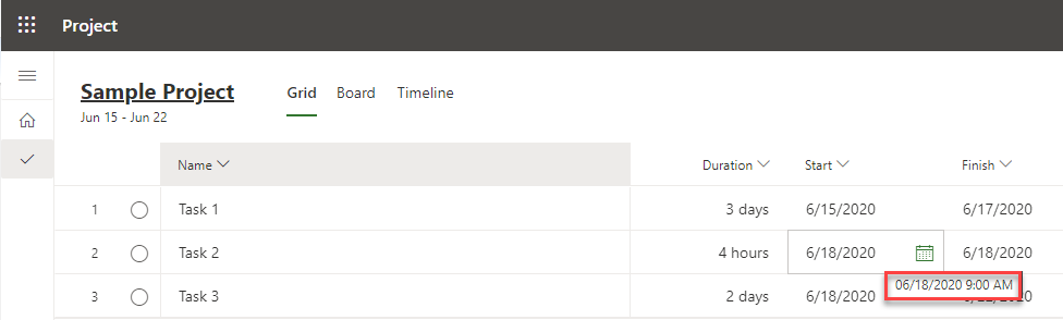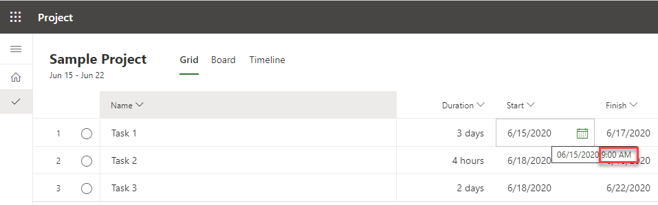 Start and Finish dates are visible. But, what about time? To see that, I will hoover my mouse at Start and / or Finish date, and I will see: