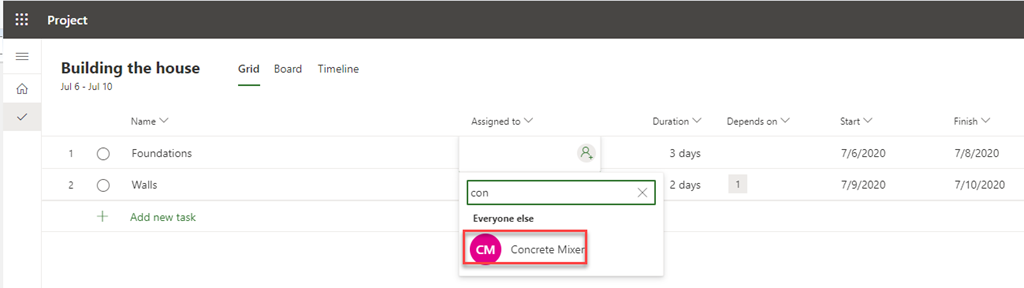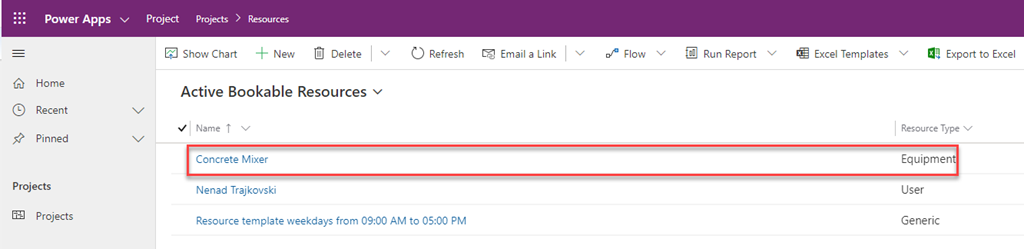 in Microsoft Project for the Web we can have human Resources (e.g. people). But what about other Resources. Let’s say that we need Concrete Mixer, when we are building foundations.
